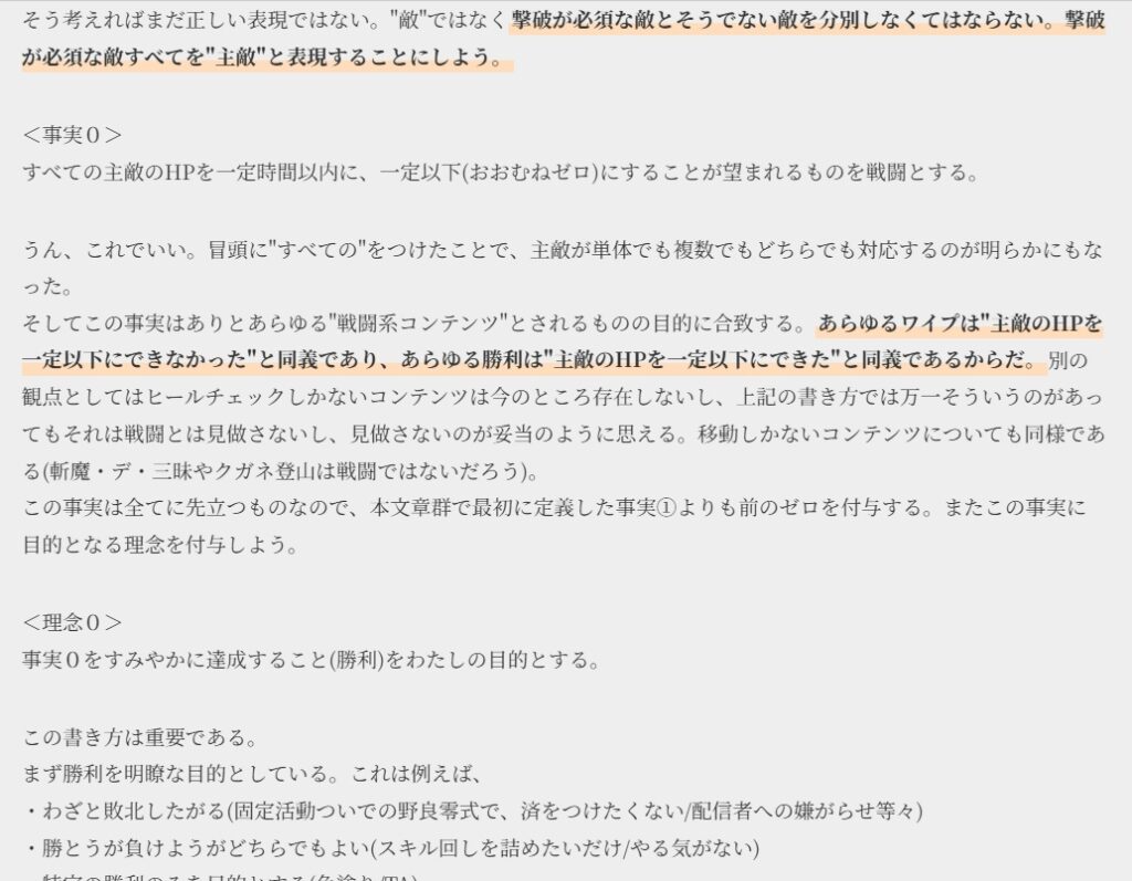 ↑これは今書いているゼロベースでFF14の戦闘を考えるという長大な文章の一部である。